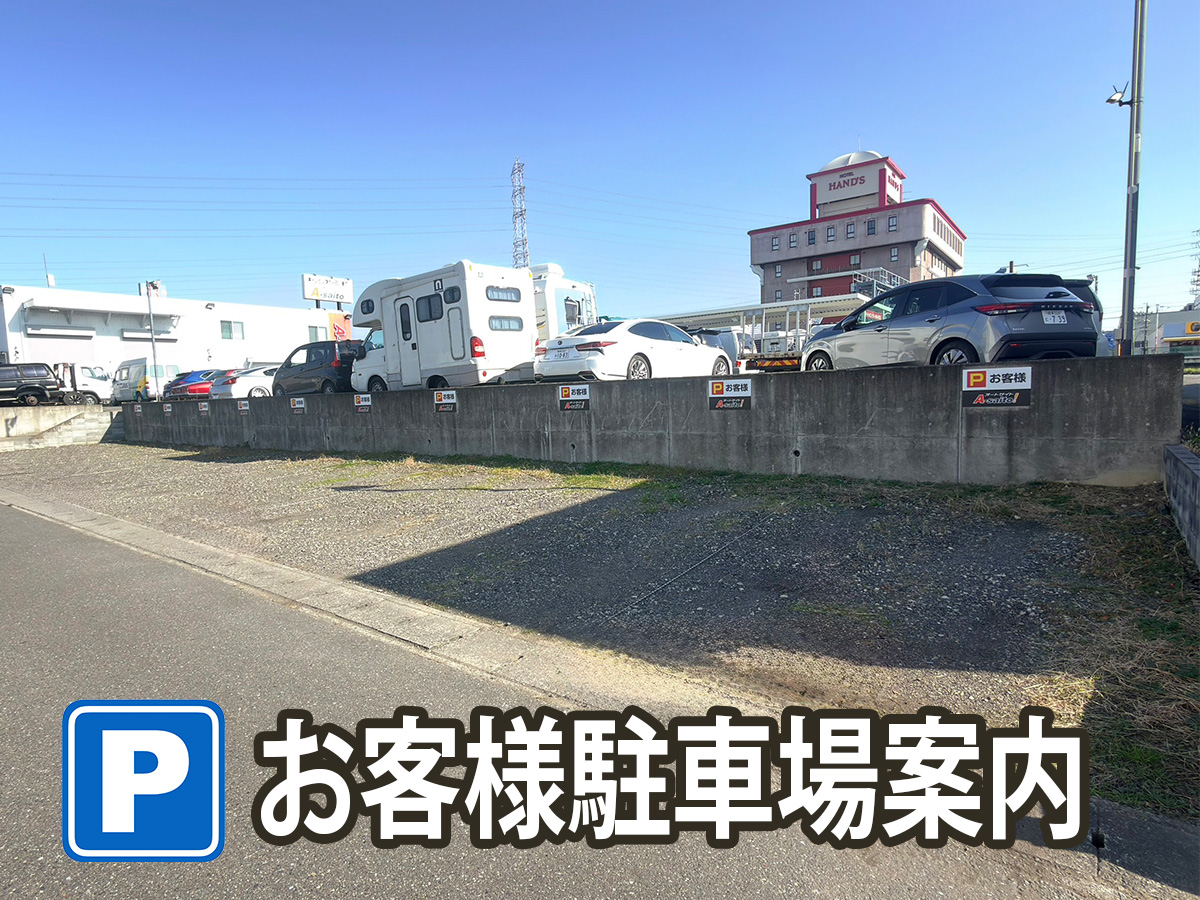 オートサイトのお客様駐車場に駐車していてだき「レンタカー受付」まで、ご来店ください。