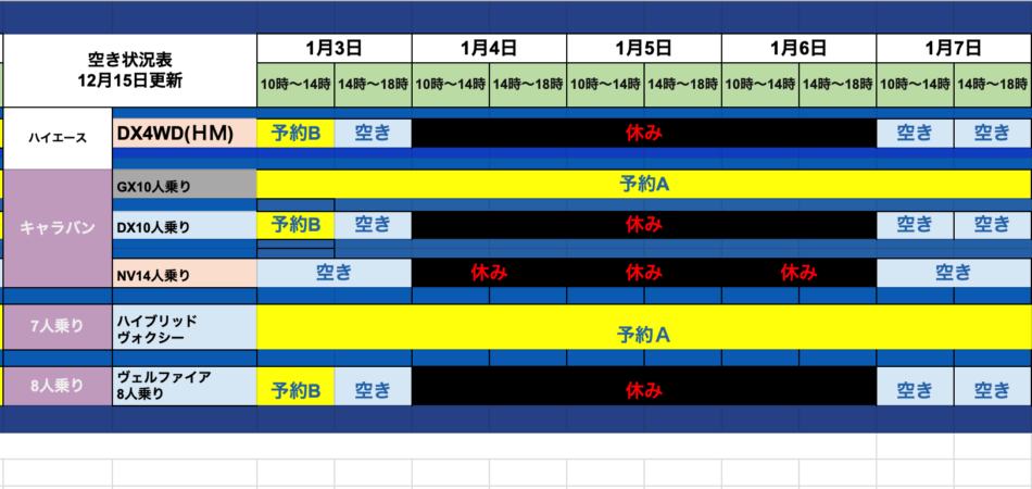 ※繁忙期は毎年変わります。ご予約時に確認お願いします。
