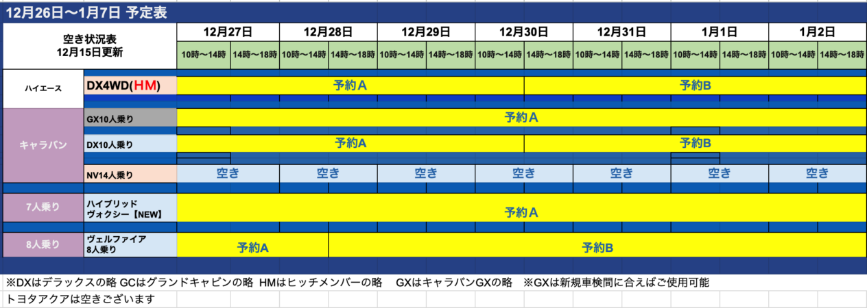 ※ご予約時、車種、日にちを必ずご入力下さい。